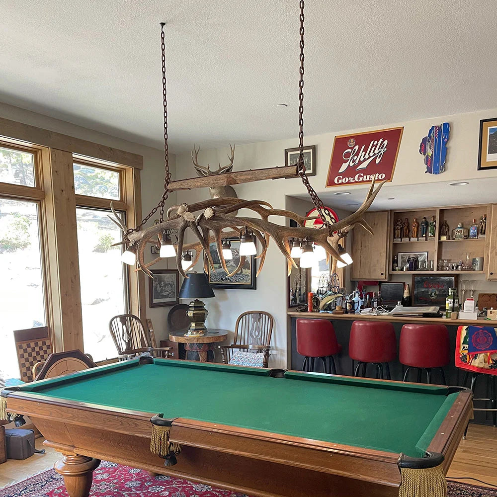 Elk Antler Pool Table / Rustic Bar Light or Long Table Chandelier With Antique “Single Tree”